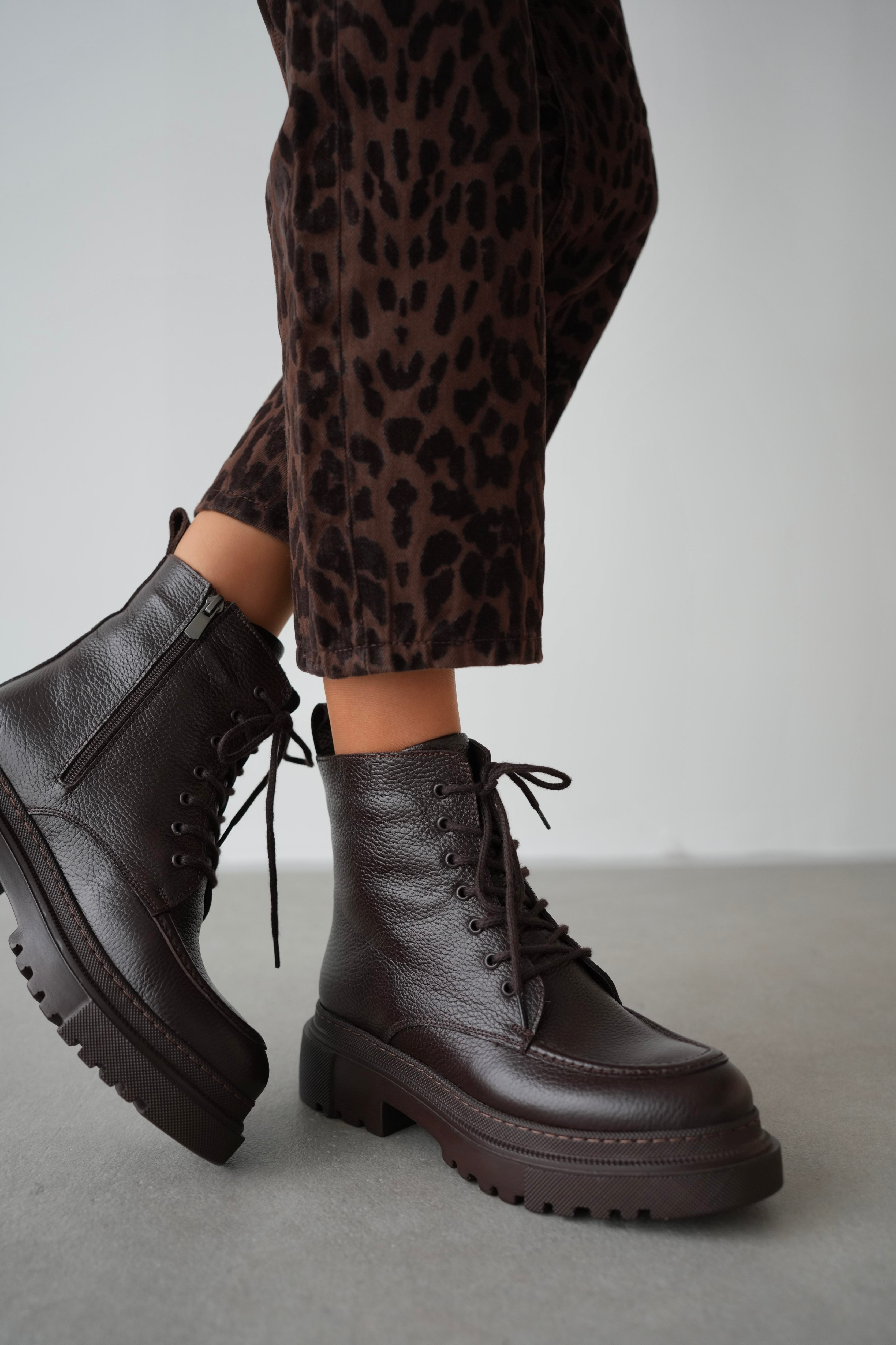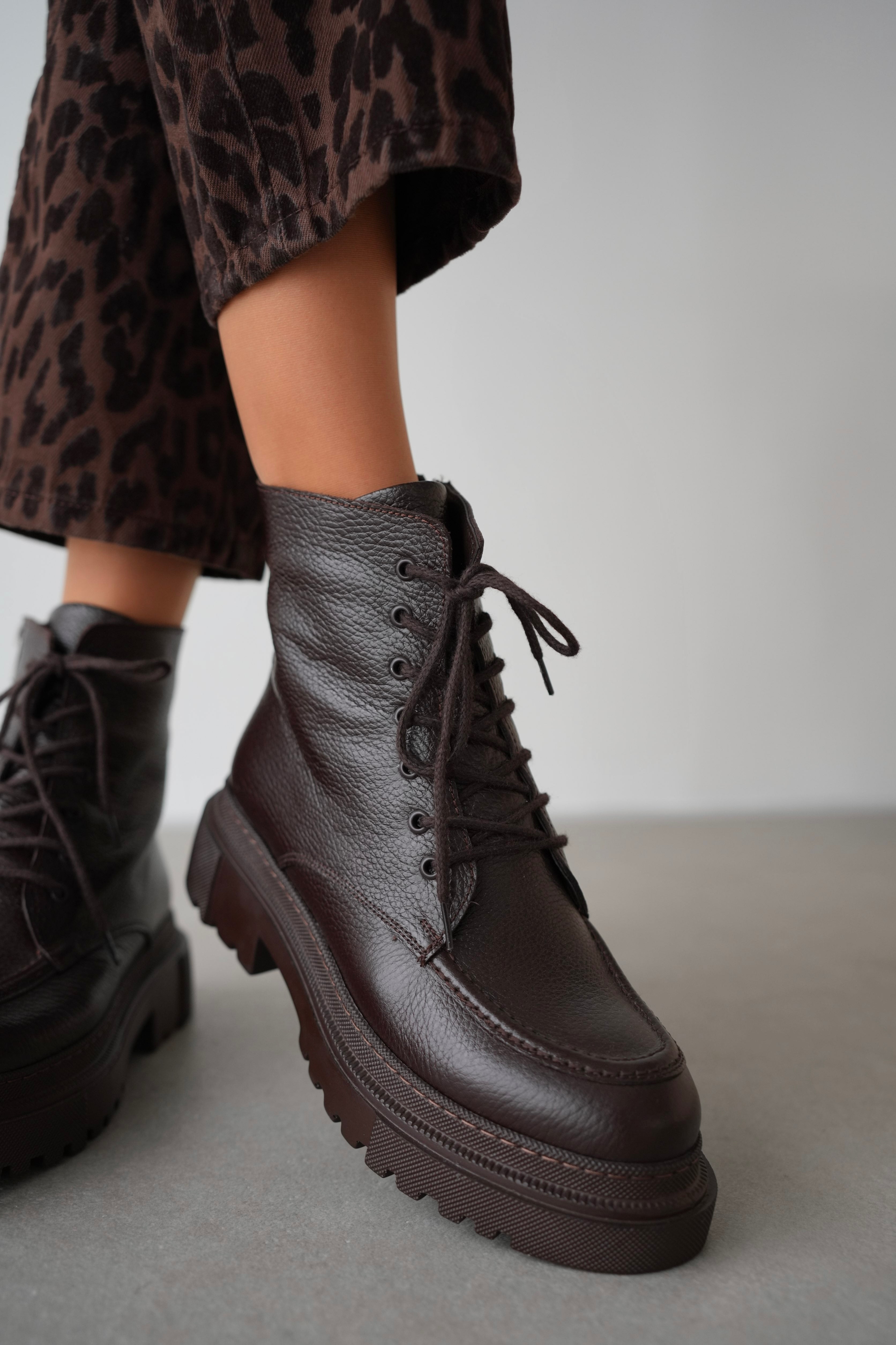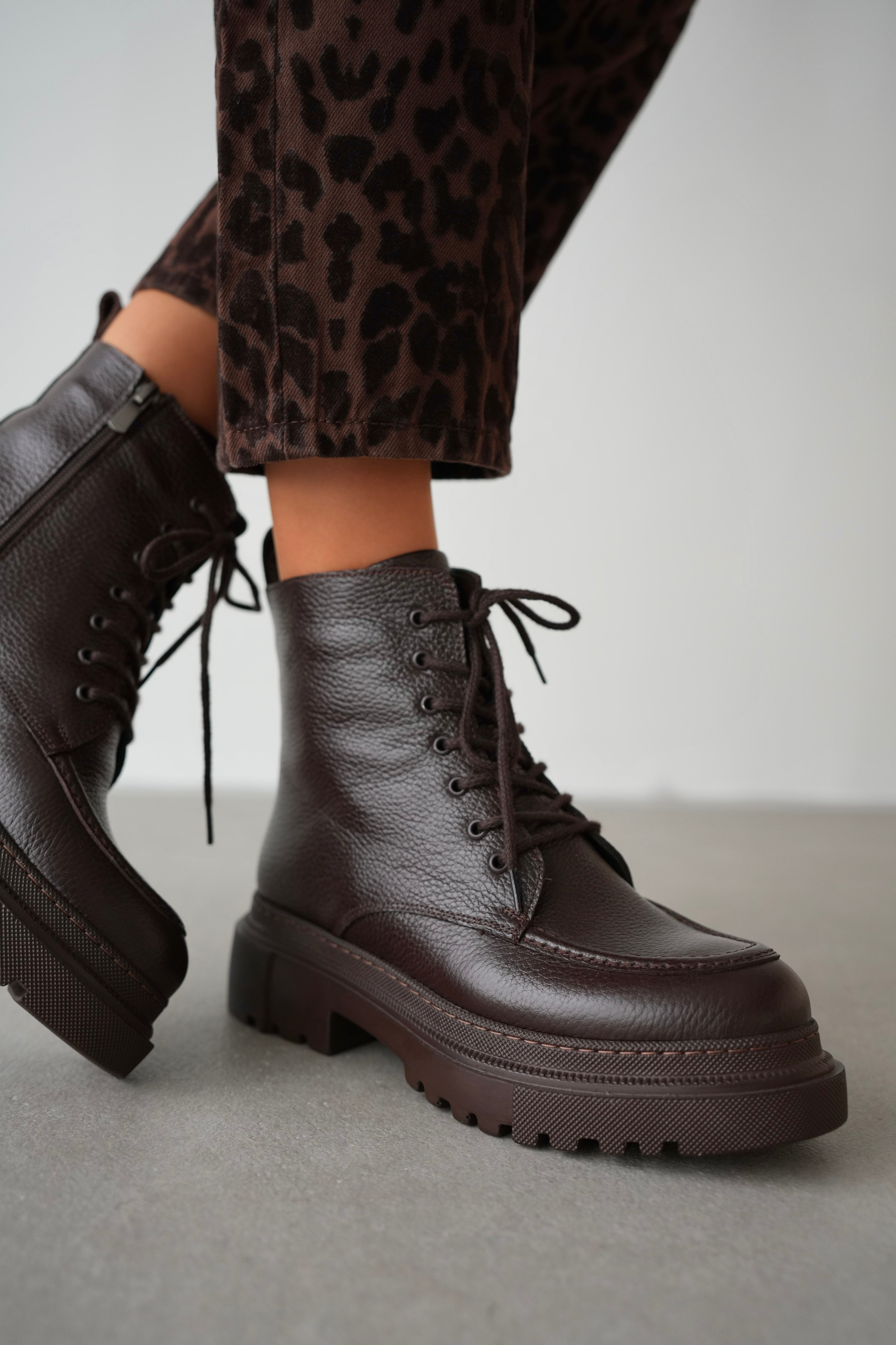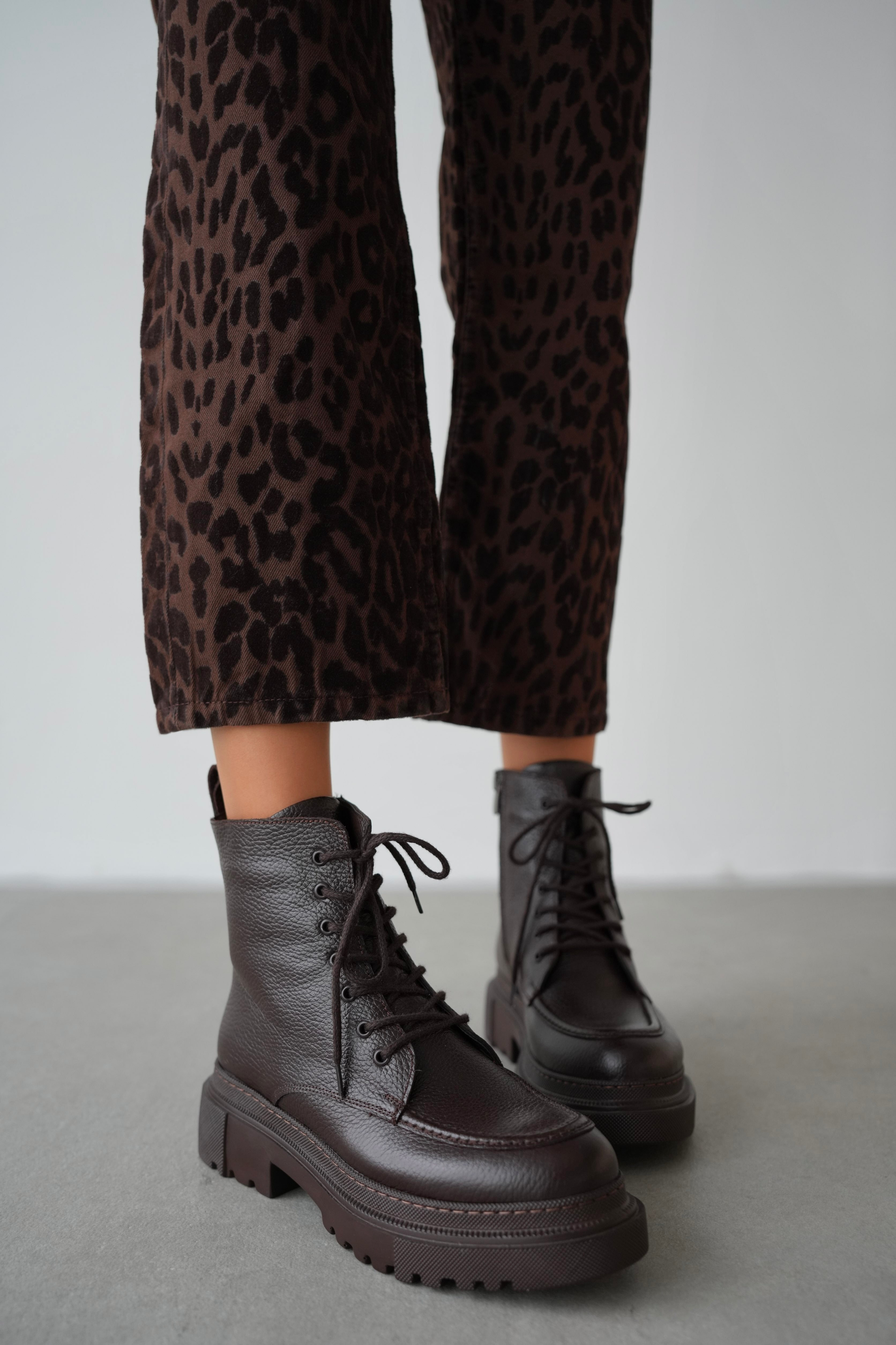 Anemon Hakiki Deri Yuvarlak Burunlu Kısa Bot