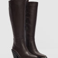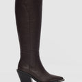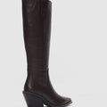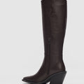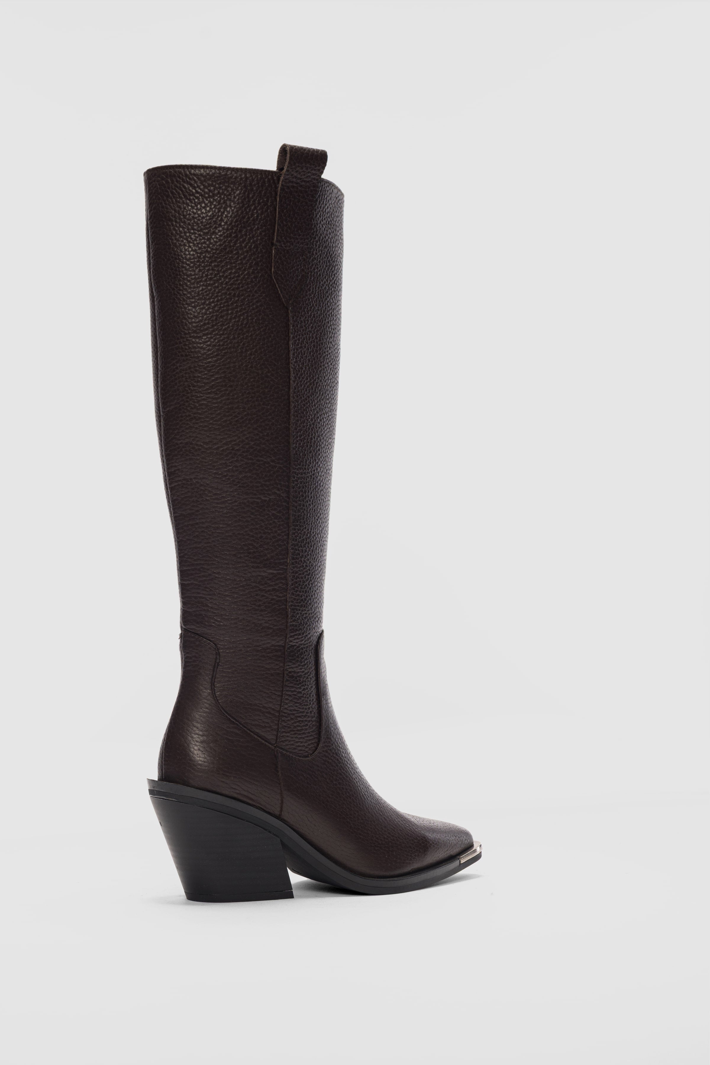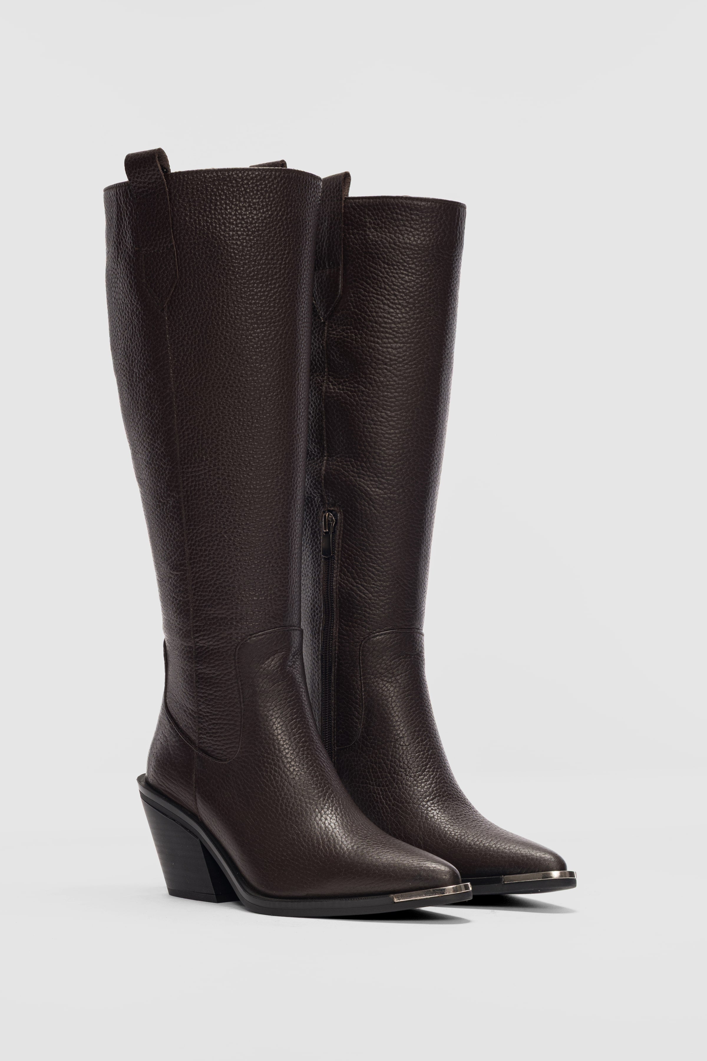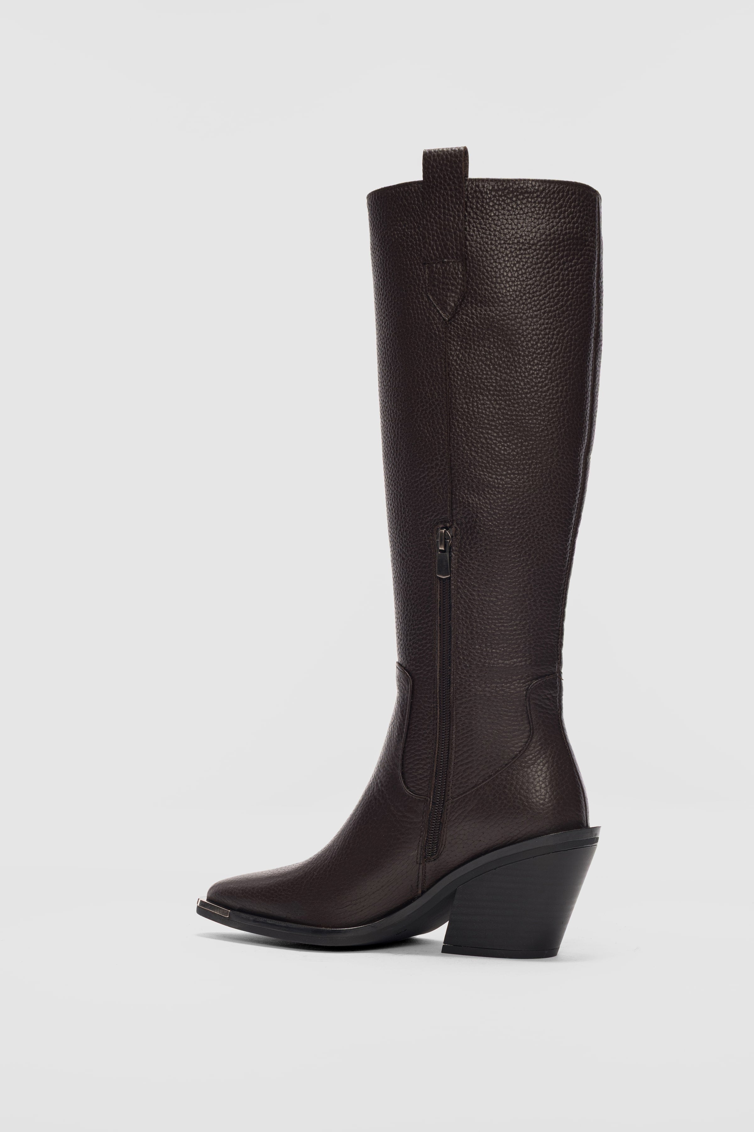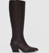 Avyssa Hakiki Deri Kısa Fermuarlı Sivri Burun Kadın Çizme- KAHVERENGİ