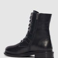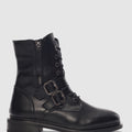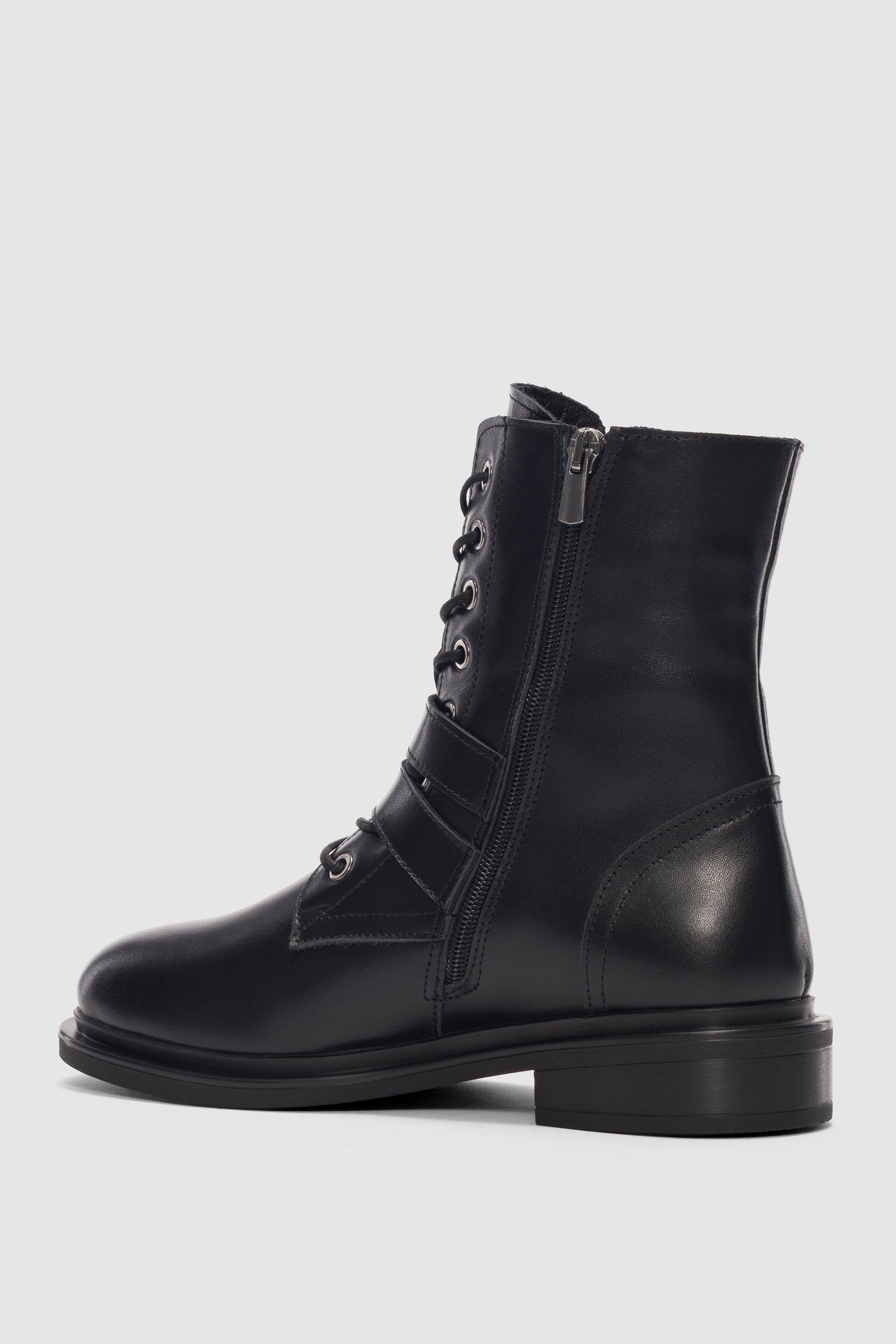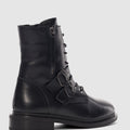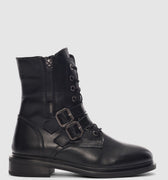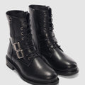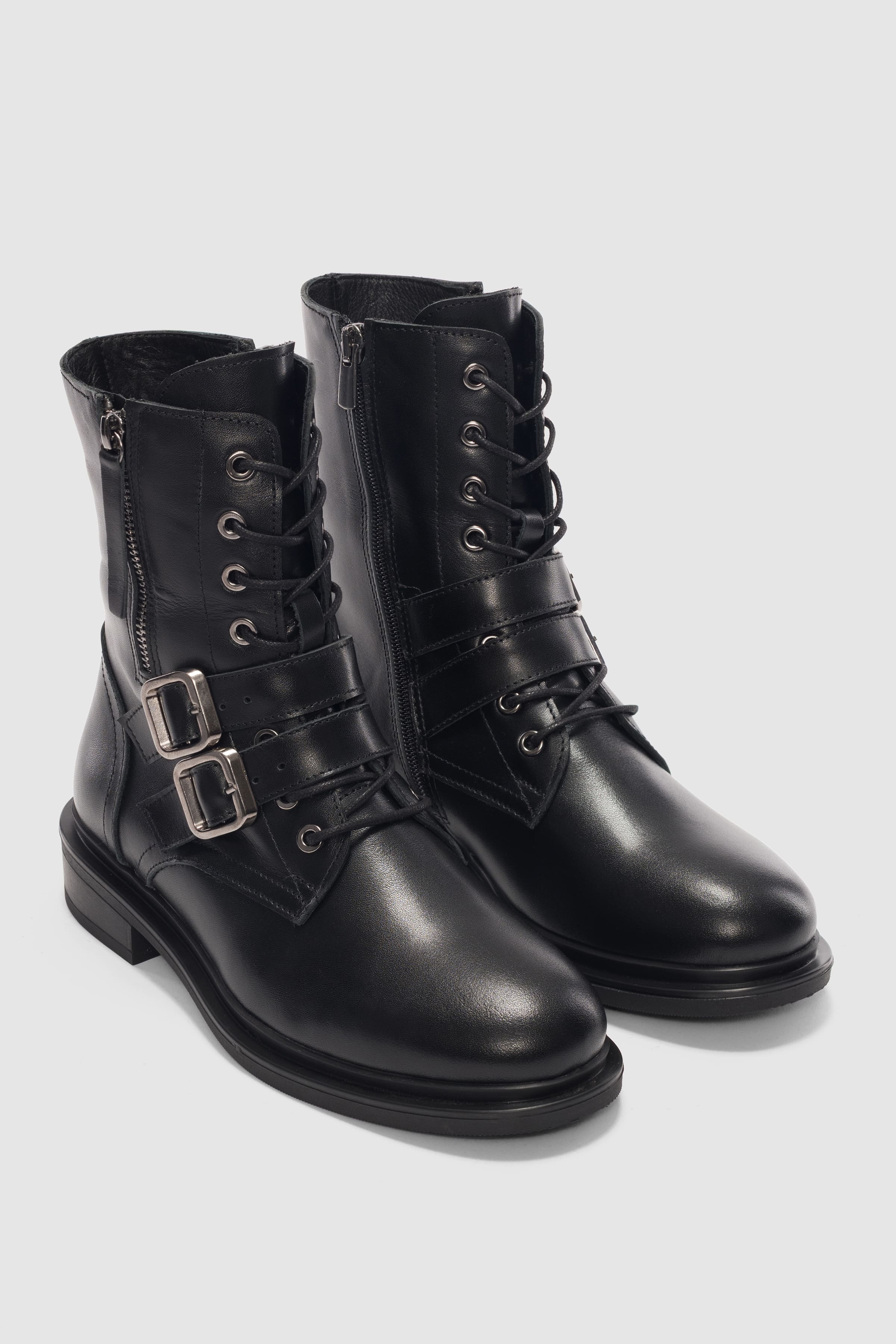 Davine Hakiki Deri Bağcık ve Toka Detaylı Yandan Fermuarlı Kadın Bot- SİYAH