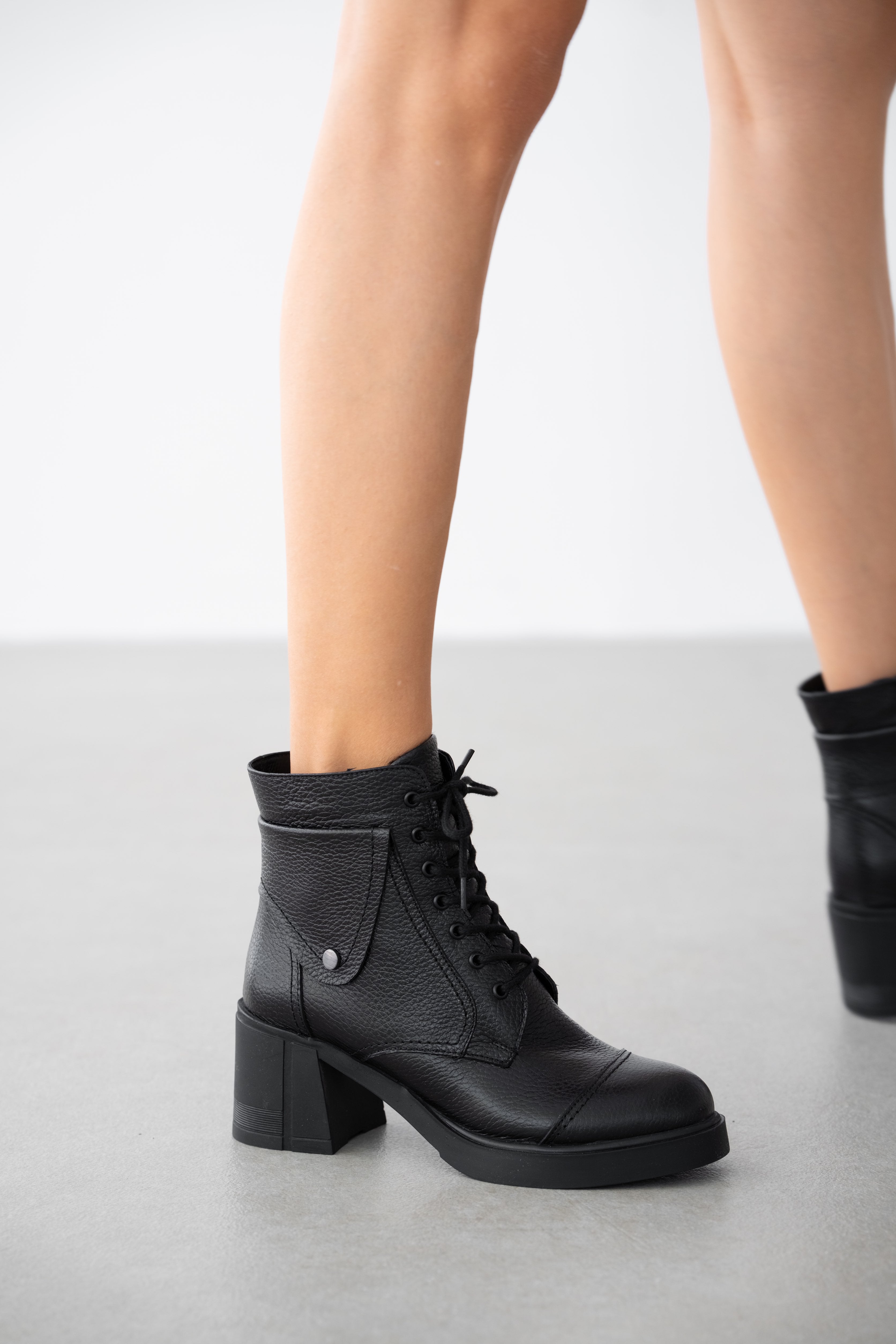 Elenore Hakiki Deri Hakiki Deri Bağcıklı ve Yandan Fermuarlı Kadın Bot