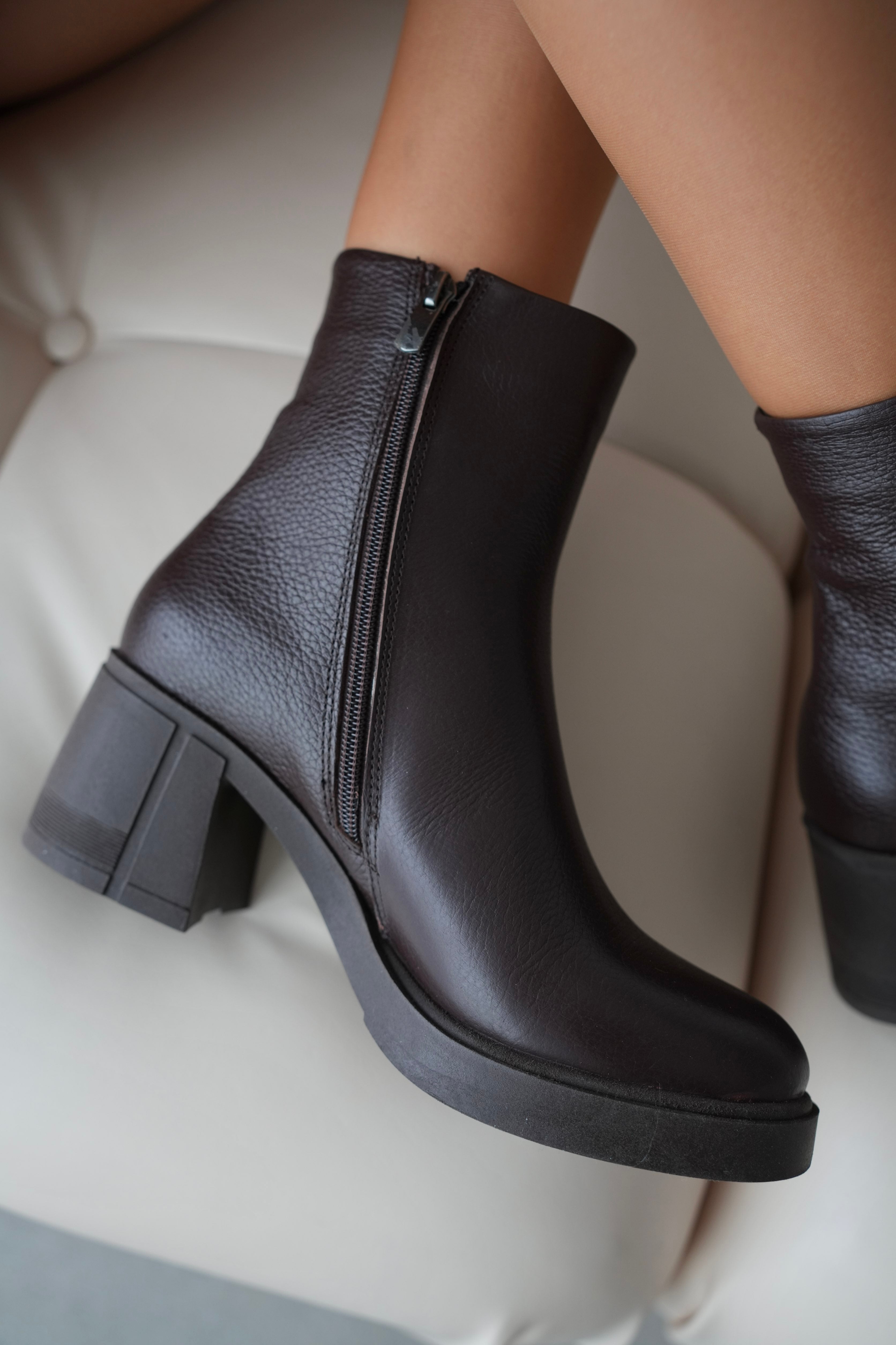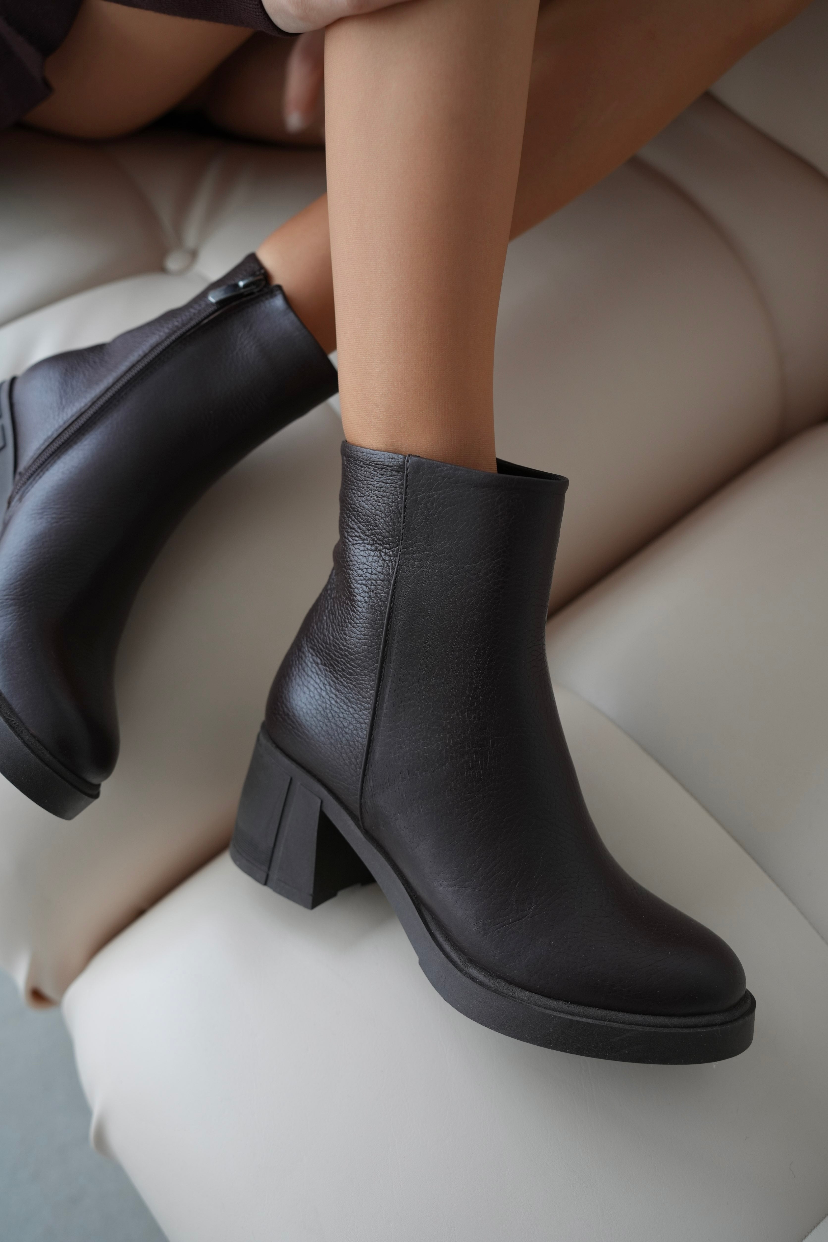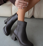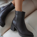 Ürün Kodu: Owena Hakiki Deri Yuvarlak Burunlu Fermuarlı Kalın Topuklu Kadın Ayakkabı