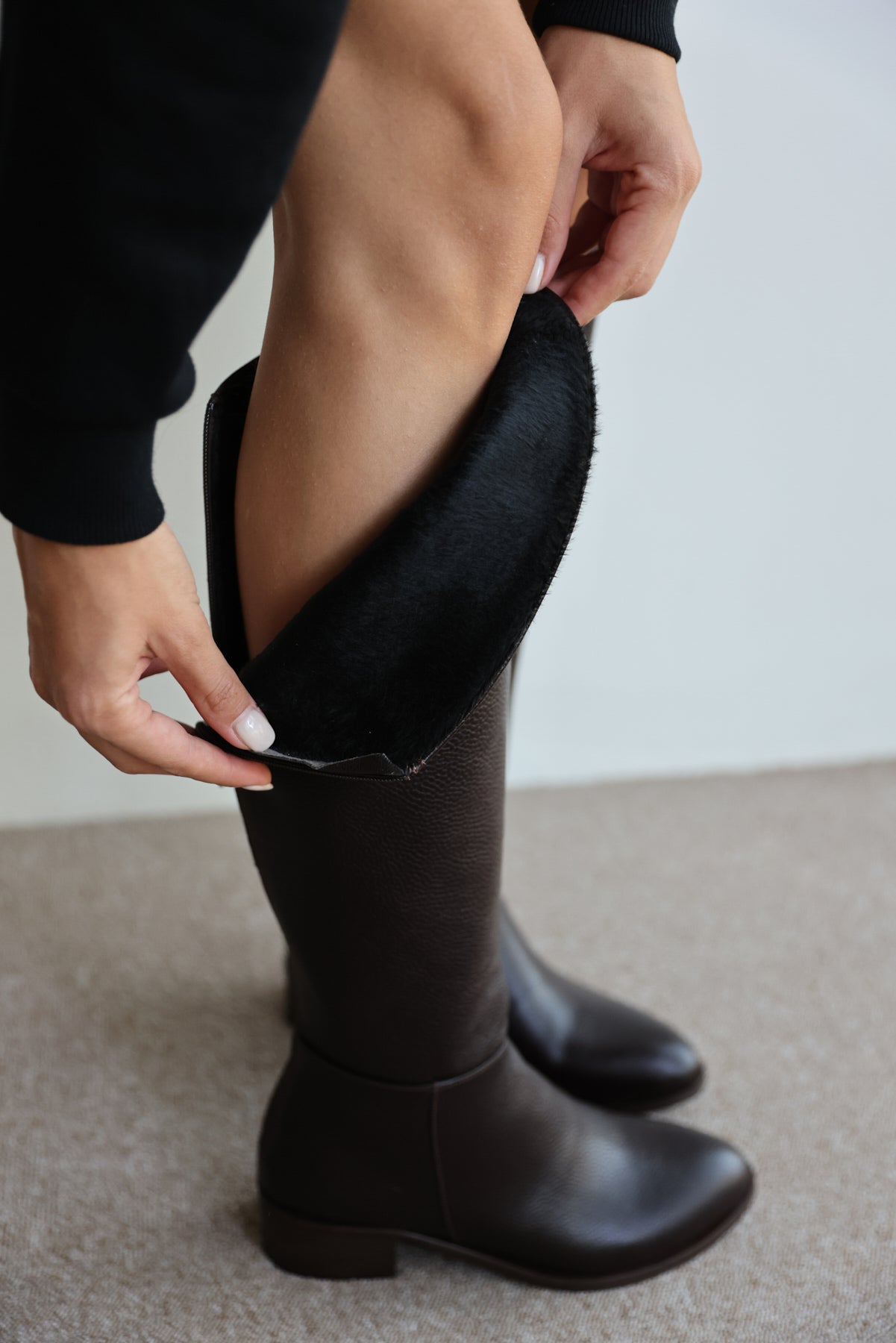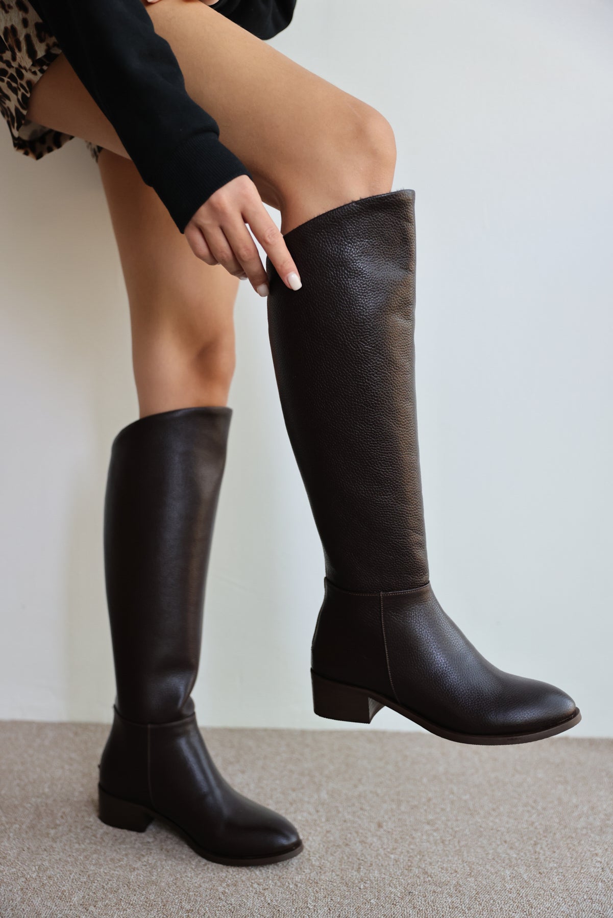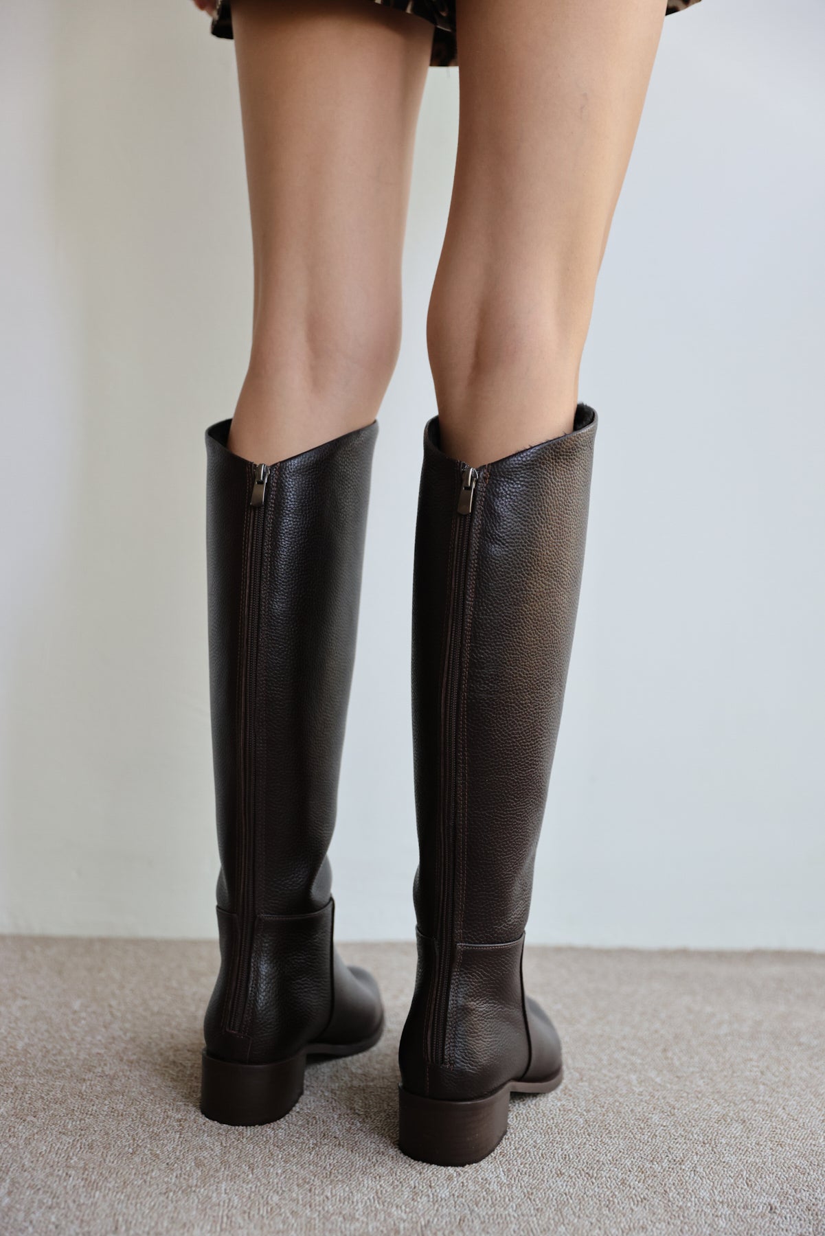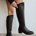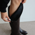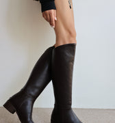 Talisman Gerçek Deri Kısa Topuk Fermuar Detaylı Uzun Kadın Çizme- KAHVERENGİ