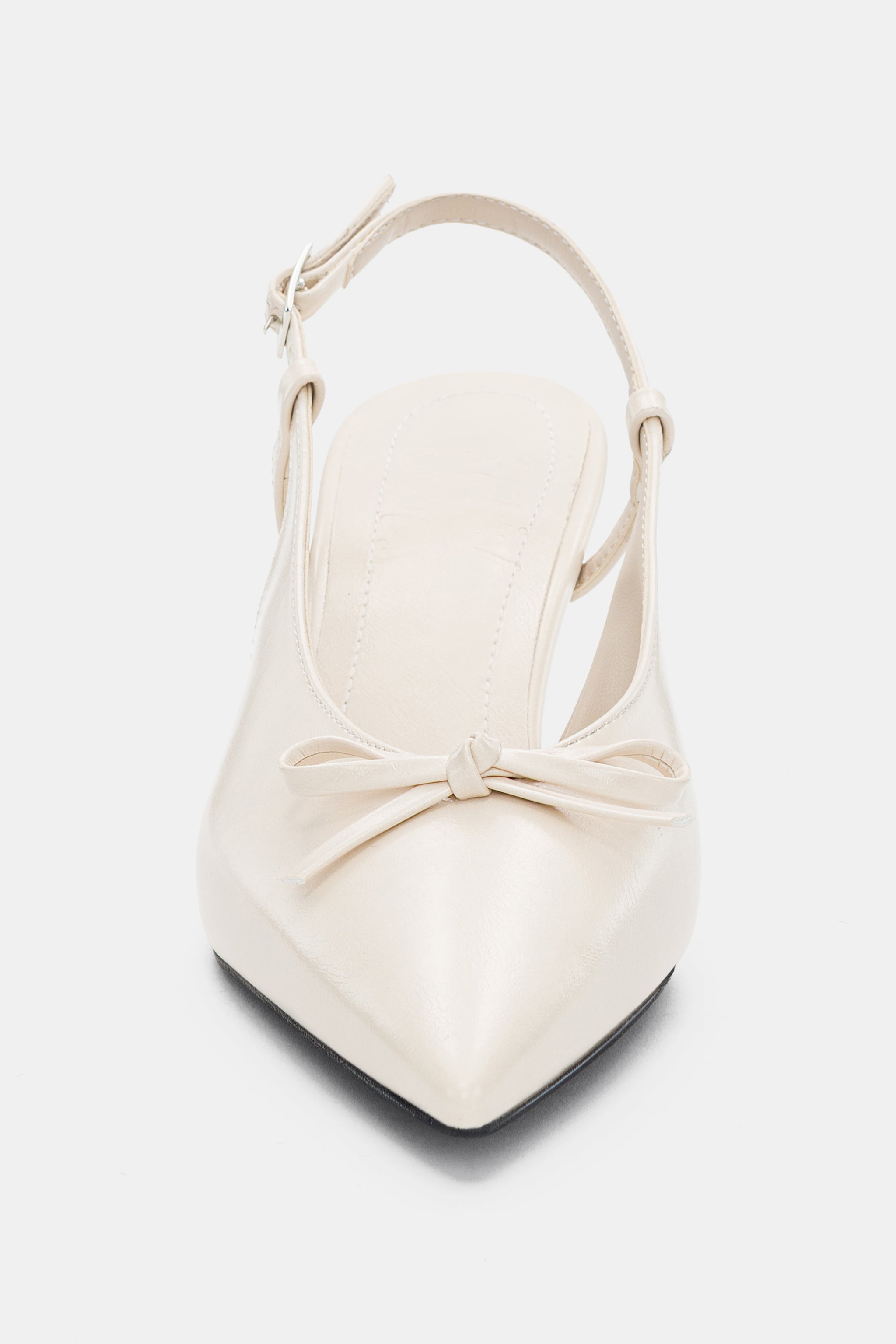 Veloria Fiyonk Aksesuar Sivri Burun Kısa Topuk Kadın Topuklu Ayakkabı- EKRU ( 0495 )