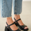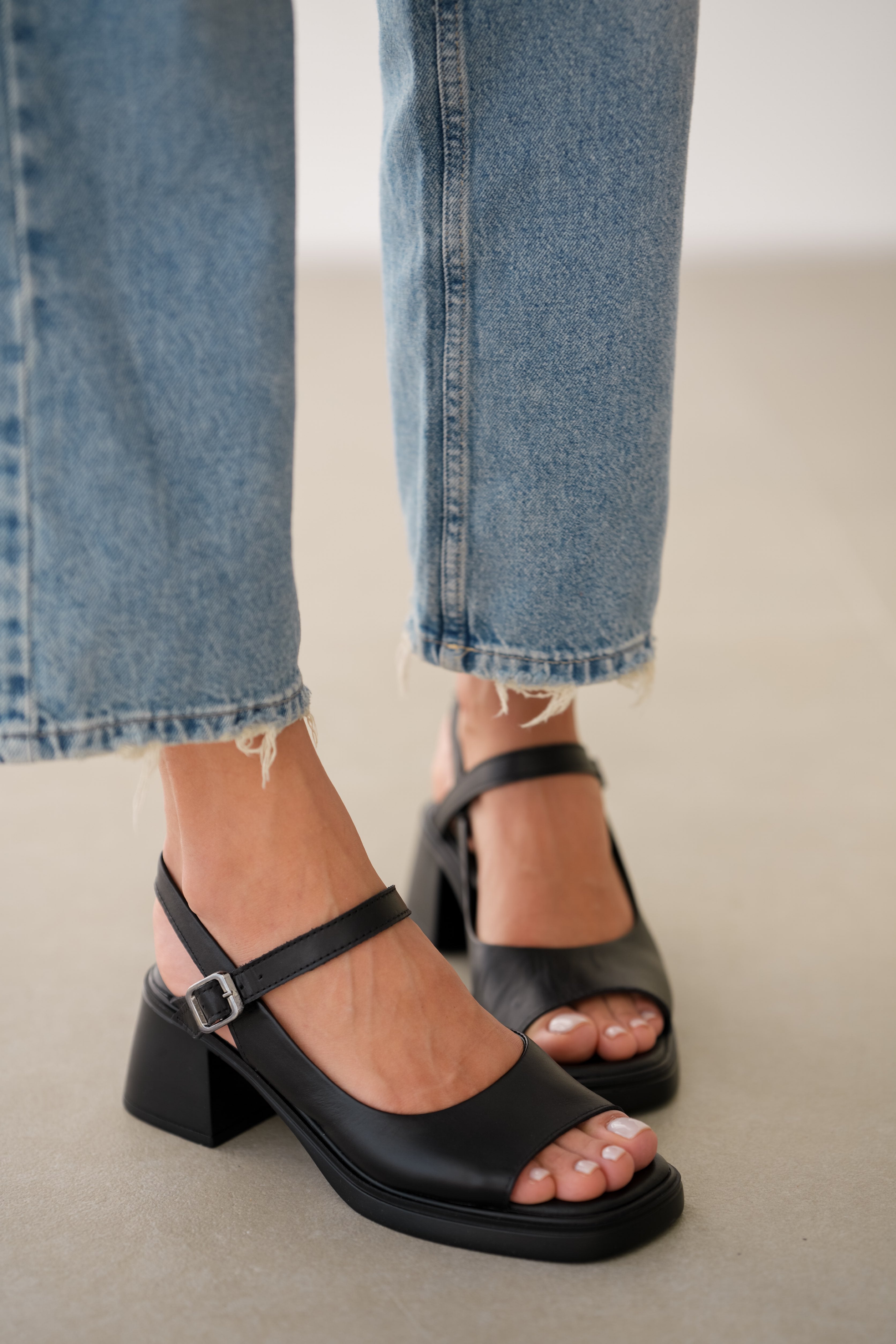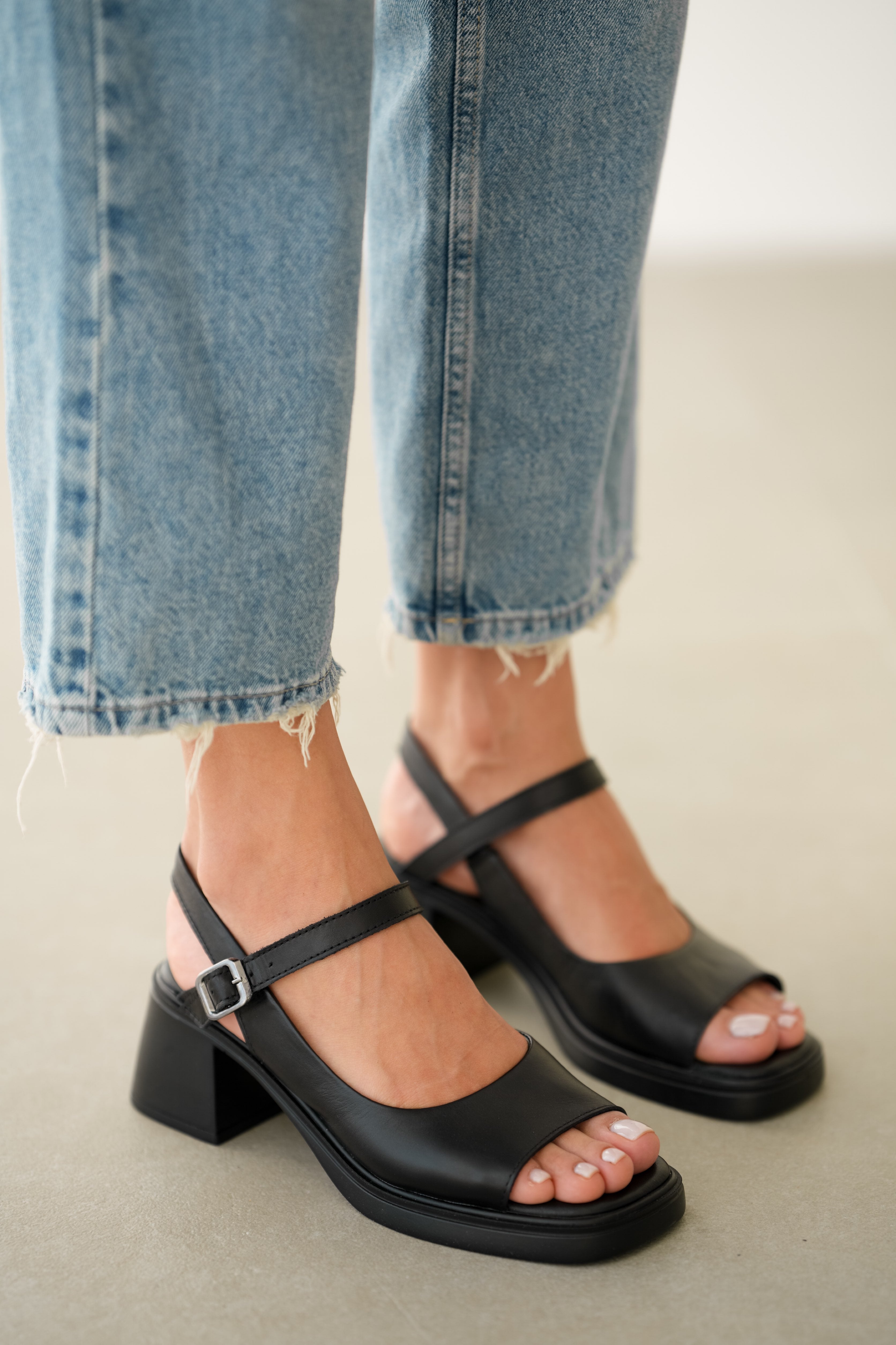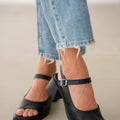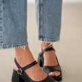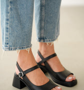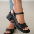 Vesna Hakiki Deri Önden Açık Bilekten Bağlamalı Arka Kısmı Lastikli Sandalet- SİYAH