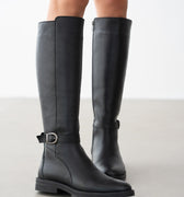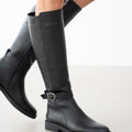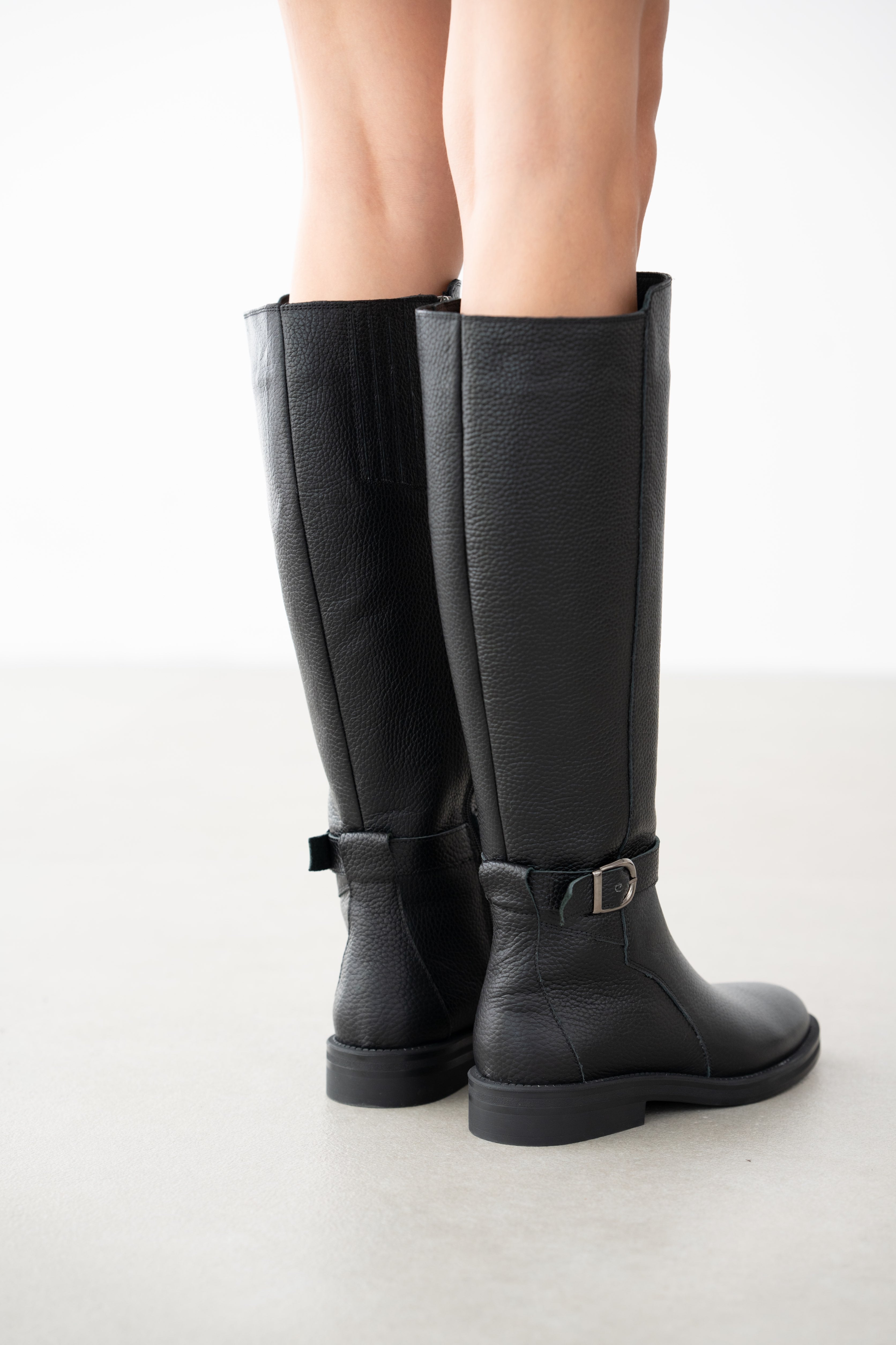 Zevon Hakiki Deri Yandan Fermuarlı Bilekten Ayarlanabilir Toka Detaylı Kadın Çizme